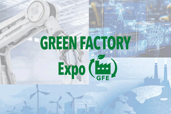 An exhibition showcasing green factory technologies, including solar energy solutions, energy efficiency innovations, and sustainable manufacturing systems.